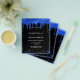 Tenga en cuenta que esta invitación está en papel de volante y es muy delgada. Los sobres no están incluidos. Para invitaciones más gruesas (el mismo diseño) visite nuestra tienda. Una joven y de moda Quinceañera, 15ª invitación a la fiesta de cumpleaños. Delante: Un fondo negro de moda. Decorada con tonterías purpurinas de color azul real, con pinturas que gotean. Personalice y agregue un nombre y detalles del fiesta. El nombre se escribe con un guión de estilo con letras a mano.