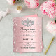 Para una elegante Mascarada, dulce 16, 16 cumpleaños. Un fondo rosado ondulado. Decorada con purpurinas de plata falsa, chispas y una máscara de máscaras. Personalice y agregue un nombre, edad y detalles del fiesta. El nombre se escribe con un guión de estilo con letras a mano