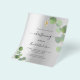 Tenga en cuenta que esta invitación está en papel de volante y es muy delgada. Los sobres no están incluidos. Para invitaciones más gruesas (el mismo diseño) visite nuestra tienda. Un bautismo moderno y elegante, una invitación al bautizo, neutral en cuanto a género. Fondo de aspecto metálico de color plateado falso decorado con vegetación eucaliptus, brotes. Personalice y agregue un nombre y detalles. Letras de color negro.
