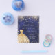 Tenga en cuenta que esta invitación está en papel de volante y es muy delgada. Los sobres no están incluidos. Para invitaciones más gruesas (el mismo diseño) visite nuestra tienda. Una invitación de moda y glamurosa para una fiesta de 15 años en Quinceañera. Un fondo azul marino con un polvo falso purpurina de oro y un vestido. El color azul es desigual. El nombre está escrito con una escritura de estilo con letras a mano moderna. Personalice y agregue los detalles de su fiesta.