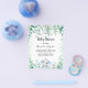 Tenga en cuenta que esta invitación está en papel de volante y es muy delgada. Los sobres no están incluidos. Para invitaciones más gruesas (el mismo diseño) visite nuestra tienda. Para una ducha de bebé, celebrando a un bebé. Un fondo blanco, un niño pequeño y adorable elefante y vegetación de eucalipto y chispas verdes. Personalice y agregue el nombre del nombre de la futura madre y los detalles del fiesta. El nombre y el texto: Baby Shower se escriben con un guión de estilo con letras a mano