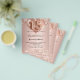 Tenga en cuenta que esta invitación está en papel de volante y es muy delgada. Los sobres no están incluidos. Para invitaciones más gruesas (el mismo diseño) visite nuestra tienda. Para una elegante Quinceañera, 15 años. Un rosa de oro falso de aspecto metálico. Decorada con oro rosa, glitte falso rosado, chispas y globos. Personalice y agregue un nombre y detalles del fiesta. El nombre está escrito con un guión de estilo con letras a mano, número 15 con fuentes de estilo globo.