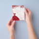 Flyer Invitación presupuestaria para vestido blanco rojo