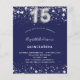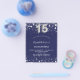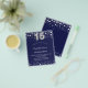 Tenga en cuenta que esta invitación está en papel de volante y es muy delgada. Los sobres no están incluidos. Para invitaciones más gruesas (el mismo diseño) visite nuestra tienda. Una invitación moderna, elegante y glamurosa para una fiesta de 15 años en Quinceañera. Un fondo azul marino, decorado con estrellas de imitación plateadas. Personalice y agregue su nombre y detalles del fiesta. El número 15 se escribe con un tipo de letra de estilo globo.