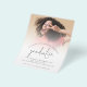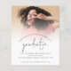 Invitación de Graduación Festa Simple Foto 2022. Una excelente alternativa de PAPEL (no cartulina) a un gran valor en un tamaño MÁS PEQUEÑO 4,5” x 5,6” sin sobres - los sobres estándar A6 son el tamaño más cercano para que quepan. Un conjunto informal de tipografía en negro para el título principal Graduación que complementa el resto del texto que puede personalizar fácilmente. Reemplace la foto de muestra con su favorita.