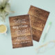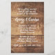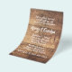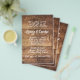 Boda rústico, invitaciones amigables con el presupuesto. El diseño del panel de madera está impreso en papel de volante. Las plantillas de texto en blanco son un estilo de tipo de letra manuscrito y chunco. Los nombres de las parejas destacan con dos párrafos para más texto. Al revés también se ve la madera.