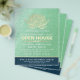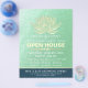 Yoga Studio Meditation Instructor / Life Coach / Healer / Reiki Master / Massage Therapy Open House Flyer Template - Modern Elegant Faux Relieve metalizado dorado Lotus sobre el fondo de la textura de oro verde.