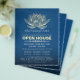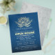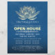Yoga Studio Meditation Instructor / Life Coach / Healer / Reiki Master / Massage Therapy Open House Flyer Template - Modern Elegant Faux Gold Lotus sobre 19-4052 TCX Classic Blue Color Grunge Background.