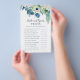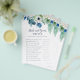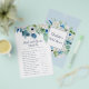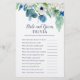 Este clásico juego de trívia de flores blancas y novios es perfecto para una ducha de boda de primavera. El elegante diseño floral presenta rosales blandas de marfil y blanco, peonías y crisantemo con toques de flores de acuarela azul perwinkle y follaje verde. Personalice la parte posterior de la tarjeta con el nombre de la novia y la fecha de la ducha.