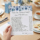 ¿Busca una manera divertida e interactiva de mantener a sus invitados entretenidos en su ducha de bebé? Nuestra Dusty Blue Floral Mommy o Daddy Baby Shower Game Card es la elección perfecta. La tarjeta de juego es ideal para las futuras mamás y papi, y es perfecta para los invitados de todas las edades. Ya sea que esté organizando una pequeña reunión o una gran celebración, esta tarjeta de juego seguramente le dará algo de diversión a su ducha de bebé.