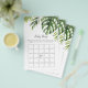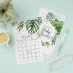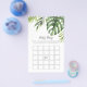 Este juego de bingo de palma tropical salvaje es perfecto para una ducha infantil con tema de playa. El diseño presenta una exótica variedad de hojas de plátano de palmera de color agua verde, helechos, follaje, plantas botánicas y vegetación para un ambiente tropical de verano. Personalice la parte posterior de la tarjeta con el nombre de la futura madre y la fecha de la ducha.