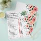 El folleto del juego de Despedida de Soltera de Té Floral presenta un arreglo floral de acuarela, taza de té y una plantilla de pregunta divertida para el juego de despedida de soltera o para el juego de la pareja. Por favor, haga clic en el botón personalizar para personalizarlo con su texto y preguntas. Visite amablemente mi tienda "loveyouart" para otros diseños similares .
