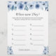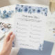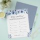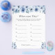 ¿Buscas una actividad única y divertida para la despedida de soltera? ¡No busques más allá de nuestro Juego de Despedida de Soltera Floral Azul Polvoriento Dónde Estaban! Este juego es una excelente manera de hacer que tus invitados interactúen y compartan historias sobre la feliz pareja. Este juego es perfecto para cualquier novia próxima a casarse y añadirá un toque especial a tu celebración.
