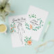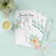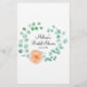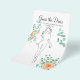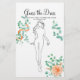 Juego de despedida de soltera adivina el vestido. Dale a cada invitada una tarjeta y haz que dibujen lo que creen que la novia llevará el día de su boda. El diseño cuenta con suaves tallos de eucalipto en acuarela y una flor naranja/melocotón. Los artículos coincidentes para completar la colección de tu evento están disponibles en nuestra tienda Zazzle.