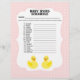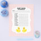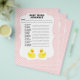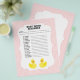 Este es un elemento divertido para usar en las fiestas de baby shower. Proporciona una lista de artículos comúnmente utilizados para bebés, pero las letras están mezcladas. El primero que resuelva el rompecabezas gana. La parte trasera está en blanco para espacio adicional para escribir las letras de las palabras y resolverlas.
