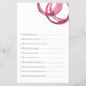 Tome un sorbo, gire y juegue con este encantador juego de preguntas sobre ducha de novia, perfecto para cualquier novia amante del vino. Diseñado para un fiesta de degustación de vinos, celebración de viñedos o una acogedora reunión de bodegas, este juego de trivialidades de novias y novios le añade un delicioso toque a sus juegos de ducha de novias, juegos de soltera o juegos de ducha de bodas. La parte delantera cuenta con elegantes ilustraciones acuáticos de uvas, vino tinto, queso y una tabla de corte rústica, mientras que la parte trasera está llena de divertida y personal trivia sobre la novia y el novio. Es perfecto para cualquier vino antes de la celebración de los votos y un creativo icebreaker para cenas de ensayo, brunches de novias o eventos de cata de vinos. Pase con diseños de temática vitivinícola como los de Victoria Grigaliunas de Do Tell A Belle. Explore la colección completa en: https://www.zazzle.com/collections/wine_themed_bridal_shower-119715963994273712 Haga una copa para amar, solicite su partida de degustación de vinos con duchas de novias hoy mismo.