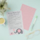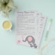 Nuestro juego de prueba de rimas infantiles para baby shower con tema de elefante rosa y gris tiene 15 frases de rimas infantiles con palabras que faltan. Pida a los invitados que completen las rimas y quien obtenga más respuestas correctas gana. CLAVE DE RESPUESTAS: 1) Flauta 2) Canasta 3) Lana 4) Cerdo 5) Hombre de magdalenas 6) Reloj 7) Hijos 8) Cubeta de agua 9) Gordo 10) Oveja 11) Ratones de campo 12) Cuajada y suero 13) Jardín 14) Hombres 15) Esposa del granjero