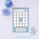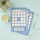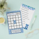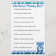 Juegos de baby shower temáticos de elefante a cuadros azules. Un lado es Bingo de baby shower y el otro lado es, "¿Quién conoce mejor a mamá?".