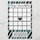 Juegos de ducha de bebé con cigüeñas Blue y Black Striped. El lado uno es Baby Shower Bingo y el lado dos es, "¿Quién conoce mejor a mamá?".