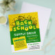 Anuncie su Back To School Supply Drive con este divertido y audaz volante creativo que presenta una tipografía burbujeante con un contorno de línea de guiño blanco, material escolar ilustracion, notas y tonos de color verde y amarillo. Personalizar la plantilla a tu gusto.