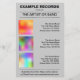 Una plantilla de folleto adecuada para el lanzamiento de un nuevo álbum. El nombre de la compañía discográfica en la parte superior (delante y detrás) junto con el nombre del artista o banda. La imagen principal de la portada del álbum (adecuada para una imagen cuadrada) en el centro con detalles debajo. Los detalles de disponibilidad en la parte inferior. El reverso tiene los mismos detalles de encabezado y pie de página junto con tres miniaturas de álbum con detalles al lado. Esto podría usarse para otros álbumes del mismo artista o banda o usarse para promocionar álbumes de otros artistas o bandas. Este folleto es personalizable de muchas maneras, todos los elementos son personalizables. El color de fondo y los colores de fuente también se pueden cambiar.
