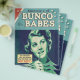 Las aventuras de Bunco Babes cámping, vintage y divertida portada de historietas. Use esto como una invitación a todos sus amigos de Bunco Babe. ¡Pídeles que se unan a la aventura! El diseño presenta a una mujer que piensa en ganar el premio por tener la mayor cantidad de bunco. El diseño funciona bien para grupos de Bunco, recaudadores de fondos, organizaciones benéficas, cumpleaños y más.