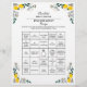 Lemon Theme Encuentra al Invitado Bingo Folleto de Despedida de Soltera presenta limón y borde floral y divertida plantilla de pregunta de bingo nupcial .Un diseño perfecto para temas como limón,rústico,verano.Haga clic en el botón personalizar para personalizarlo con su texto y preguntas.Visite mi tienda " loveyouart" para otros diseños similares .