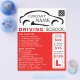 Logotipo de coche negro, escuela de conducción, folleto publicitario para instructor de The Business Card Store.