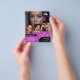 Volante de doble cara para un artista de maquillaje, pintor de uñas, peluquero o profesión similar donde se necesita mostrar su trabajo en un collage retro de fotos con bordes magenta y fondo magenta. Personalice con su logotipo y en la parte posterior una foto adicional y su código QR con su cuenta de red social. Folleto promocional de collage de fotos retro para un estilista de pelo, artista de uñas o esteticista con un diseño magenta y negro personalizado con tu logotipo, fotos y código QR. Hágale saber a sus clientes potenciales y clientes de sus servicios y dónde encontrar su negocio en línea y cómo llegar a su negocio por teléfono o correo electrónico con este folleto de promoción en color negro y magenta para su pequeña empresa con su logotipo.
