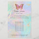 Flyer logotipo de mariposa sobre efecto iridiscente fals