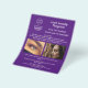 Crea tu propio y moderno folleto promocional de negocios con este sencillo diseño. Todos los detalles del personalizable incluyen el logotipo de su empresa, la ubicación de su negocio, el nombre de su negocio, la fecha de creación y la información del programa de servicio promocional o premio. El diseño de este diseño es profesional, sencillo y moderno, con un fondo violeta con elegante tipografía sans serif blanca y un par de imágenes para su negocio. Este diseño es versátil ya que la personalización se adapta a cualquier tipo de negocio, profesión o industria.