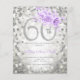 Plantilla de invitación elegante para fiesta de cumpleaños 60 años con flores plateadas y púrpura y luces glamurosas. Con una disposición floral moderna.