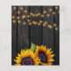 Elegante y rústico barato BUDGET verano o otoño boda elegante y asequible plantilla de volante de invitación sobre madera de grano marrón oscuro con un hermoso ramo de girasoles y cuerdas de luces de brillo. Fácil de personalizar con tus detalles. +++++++++++++ La invitación es apta para bodas de presupuesto rústicos de verano o otoño elegantes.++++++ POR FAVOR LEA ESTO ANTES DE COMPRAR! Esta es una tarjeta de boda asequible para el presupuesto impresa en un FLYER. +++ Tenga en cuenta que el PAPEL PRESUPUESTARIO ES DELGADO - Puede actualizar para que esta tarjeta se imprima en el material de cartón ++++ ENVELOPES NO INCLUIDOS. +++ Compruebe dos veces toda la información y la ortografía del texto porque recibirá exactamente lo que ve - nadie más comprobará nada antes de imprimir. ++++ Esta tarjeta está diseñada para el tamaño de 4,5" x 5,6". En el funda usted elige otro tamaño de la tarjeta y el texto sale de la página, todo debe ser corregido antes de añadir el producto al carrito. Por favor, pida ayuda al servicio de diseño en vivo.