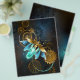 luciérnagas de vapor con alas transparentes azules y bombilla verde sobre fondo gastado, marrón y texturado. Estilo Steampunk.