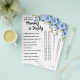 Flores azules, mamá o papá (dijo que dijo) Juego de ducha para bebé. Juegos de versión en inglés y español incluidos (frontal y posterior). Añadir la novia a Nombre en la plantilla para la versión en español e inglés. Para más personalización (cambiar otra redacción, color de fuente, estilo de fuente ), haga clic en personalizar, desplácese hacia abajo y haga clic en el vínculo "haga clic en el personalizar más adelante". CÓMO JUGAR: Los invitados adivinan si la madre o el padre dijeron que las frases mostraban su respuesta en el lado derecho debajo de cada una. La persona con las respuestas más correctas gana