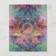 Esta obra de arte tiene un estilo bohemio-chic y soñador con un diseño caprichoso de mandala tribal dorado floral colocado sobre un hermoso fondo de acuarela colorida de la nebulosa de Orión y estrellas. El diseño presenta elementos aztecas y místicos, el universo y la naturaleza.