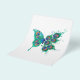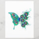 Mariposa pintada de forma artística, ficticia, verde, detallada, con plumas verdes, hermosas, de pavo real sobre fondo blanco.