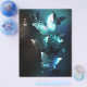 Mariposas brillantes nocturnas de menta sobre fondo abstracto negro.