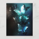 Mariposas brillantes nocturnas de menta sobre fondo abstracto negro.