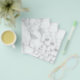 Este volante es de doble cara. Ambos lados llevan un elegante patrón falso de mármol blanco. Este folleto no contiene texto ni imágenes para que pueda personalizar como desee.