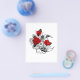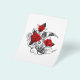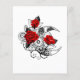 Contorno, luna de media luna mecánica con engranajes, decorada con rosas rojas con tallo negro y hojas sobre fondo blanco. Steampunk