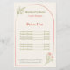 This premium price list blends Mediterranean elegance with clean, professional design. A soft cream background is framed by a bold red arch, complemented by delicate illustrations of olive branches and floral accents. The warm color palette—featuring sage green and terracotta—adds a natural, creative touch that reflects your personal style.