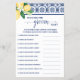 Lemons Blue Mediterranean Tile ¿Qué dijo el Groom? Juego de ducha de novia. Cambiar el texto al diseño. Para cambios adicionales (color de fuente, estilo de fuente), haga clic en personalizar, desplácese hacia abajo y haga clic en el vínculo "Editar usando herramienta de diseño". CÓMO JUGAR: Los invitados adivinan las respuestas que el Groom dijo sobre la Novia