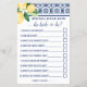 Lemons Blue Mediterranean Tile ¿Qué tan bien conoces a la futura novia? Juego de ducha de novia. Cambiar el texto al diseño. Para cambios adicionales (color de fuente, estilo de fuente), haga clic en personalizar, desplácese hacia abajo y haga clic en el vínculo "Editar usando herramienta de diseño". **Comprobar la colección de todos los diseños coincidentes**. CÓMO JUGAR: Los invitados responden a preguntas sobre la novia, después de completar todas sus respuestas, la novia responde a todas las preguntas y los invitados comprobarán las casillas correctas que adivinaron correctamente y escribirán el total de respuestas correctas en el fondo. La persona con las respuestas más correctas gana.
