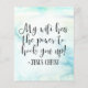 Delante: Divertido, alegre, religioso diciendo, "¡Mi wifi tiene el poder de conectarte! -Jesucristo", en negro, letras de guión con fondo turquesa y acuarela. Atrás: Imagen abierta de la biblia/libro, y plantillas de personalizable para la información de la iglesia.