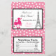 Este adorable poodle rosado Paris Torre Eiffel Microwave Popcorn Wrapper está impreso en un tamaño de 5.5" x 8.5" (para envolver las bolsas de palomitas de maíz del tamaño REGULAR) y está impreso en papel de 100 libras brillante y vibrante. Nuestro artículo básico contiene un 50% de contenido reciclado. Es perfecto para añadir un accesorio a juego para cualquier ducha de bebé o fiesta de cumpleaños. Tenemos una línea entera dedicada a este diseño aquí en el zazzle store bajo la pestaña * Diseño Colecciones del menú para incluir invitaciones (5x7), Etiquetas de retorno, Etiquetas de correo, Sellos para sobres, estampillas de rehenes, Tartas de copas, Envolturas de botellas de agua, Hershey's 1.55 oz. Envolturas para barra grande, Pegatinas en miniatura de Hershey, Envolturas para bolsitas de palomitas de microondas, Tarjetas para lugares escribibles, Toppers para bolsitas de goody, Tarjetas de agradecimiento FLAT (4x5), Tarjetas de agradecimiento FOLDED (4x5), Etiquetas de favoritos, Tarjetas de menú, libros de papel, Tapas de ligas, Tarjeta de bingo Marcadores, Hojas de llamadas con tarjeta de bingo, tarjetas de consejo para escritura (4x5), etc.