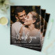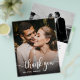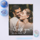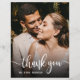 Presupuesto Elegante Boda de mano con carta Foto Gracias tarjeta personalizada de bajo presupuesto THIN. Elegante y moderno boda gracias a la plantilla de postales que incluye una foto vertical completa en el frente con texto superpuesto "Gracias" en un tipo de letra de escritura tipográfica con letras a mano en blanco en la imagen. ***POR FAVOR, TEN EN CUENTA QUE! *** PAPEL PRESUPUESTARIO/VOLADOR DELGADO. *** ACTUALIZAR EL PAPEL PARA UN PAPEL MÁS ESPESO. *** Postal: https://www.zazzle.com/elegant_hand_lettering_wedding_photo_thank_you_postcard-256315488263404361 Material de papel tradicional con sobres: https://www.zazzle.com/modern_hand_written_script_wedding_photo_thank_you_card-256486770669732945 Personaliza tu mensaje de agradecimiento y nombre. Si prefiere escribir a mano la nota, simplemente elimine el texto de ejemplo para hacer más espacio. Bonitas tarjetas de presupuesto simples. Si necesita ayuda o un elemento que coincida, póngase en contacto con el diseñador.