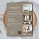 Promociona tu marca con este folleto profesional, elegante y personalizable, diseñado para dar una impresión duradera. Cargue 3 fotos personales o de portafolio, agregue el texto o la lista de servicios de su personalizado e incluya sus datos de contacto para ayudar a los clientes a comunicarse con usted fácilmente. Un código QR escaneable enlaza directamente a su página de reserva de consultas, medios sociales, sitios web, o cualquier URL personalizado, lo que facilita más que nunca la conexión. Ideal para diseñadores de interiores, estilistas personales, entrenadores, inmobiliarios, profesionales de la belleza y otros profesionales de servicios que desean una herramienta de marketing moderna y refinada.