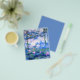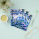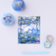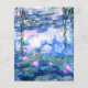 Un volante de nenúfares rosa Monet con hermosos nenúfares de agua rosada flotando en un tranquilo estanque azul con colchonetas de lirios. Un gran regalo de Monet para los amantes del impresionismo y del arte francés. Impresionismo natural sereno con flores y paisajes pintorescos de estanques.