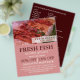 Flyer Muestra de mariscos, pescador/mujer, mercado de pe